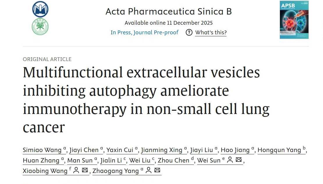 杨照罡教授(国家级青年人才海外项目获得者)团队通过自主研发的新型电穿孔技术,成功破解了外泌体产量低、载药难等核心难题,并以此为基础构建了多类型工程化外泌体递药系统,在非小细胞肺癌、三阴性乳腺癌、胰腺癌及肝纤维化等多种疾病的临床前研究中表现出显著的治疗潜力。2025年,团队发表了多项相关研究成果。