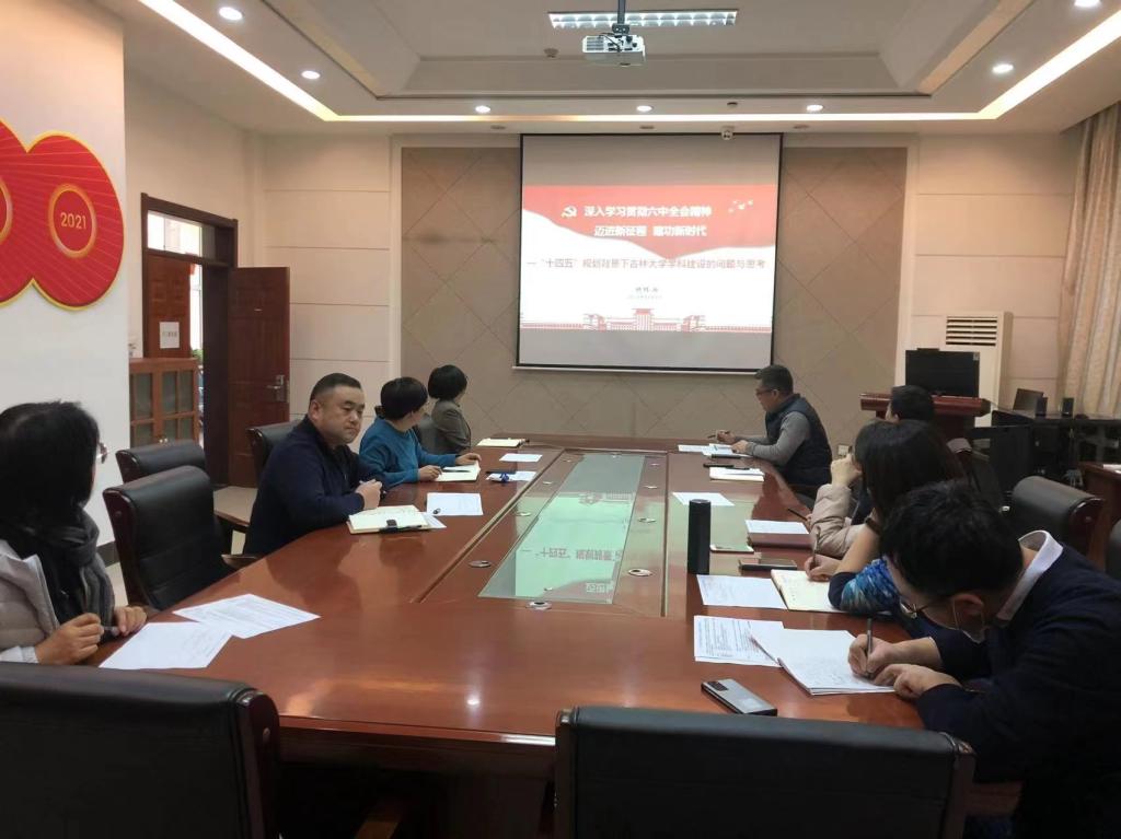 在生命科学楼335会议室召开专题会议学习常务副校长郑伟涛关于《“十四五”规划背景下吉林大学学科建设的问题与思考》的专题报告,学院党政领导班子成员参加会议,会议由院长于湘晖主持。